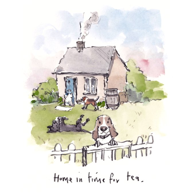 Good night, lovely people and lovely dogs. The four made it home in time for tea. Sleep well and sweet dreams. I am wishing you the very best for the tail end of your week. #hoorayfordogs #labrador #westie #beagle #springer #homefortea #cottage
