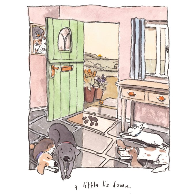 Good night, lovely people and lovely dogs. The team are having a little lie down on the cool flag stones. Sleep well and sweet dreams. I'm wishing you the very best for the week to come. #hoorayfordogs #beagle #labrador #springer #westie #redsquirrel #cottage