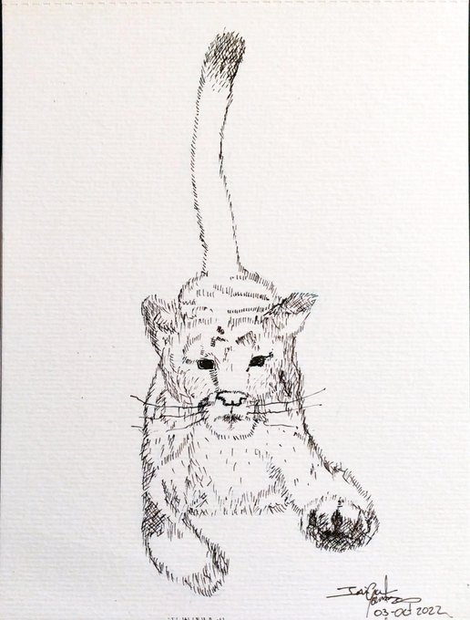 Day 28: Puma. Have you ever seen baby pumas? They are such precious things!! #puma #cougar #mountainlion #feline #felines #felineart #felinedrawing #bigcat #bigcats #bigcatart #bigcatdrawing #animal #animalartist #wildlife #wildlifeartist #inktober #inktoberchallenge #momiji95