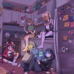 They raided Ame's kitchen to celebrate the anniversary HAPPY ONE YEAR COUNCIL ❤️💛💚💙🤎 #councilThefirst #holoCouncil #galaxillust #FineFaunart #kronillust #drawMEI #illustrayBAE