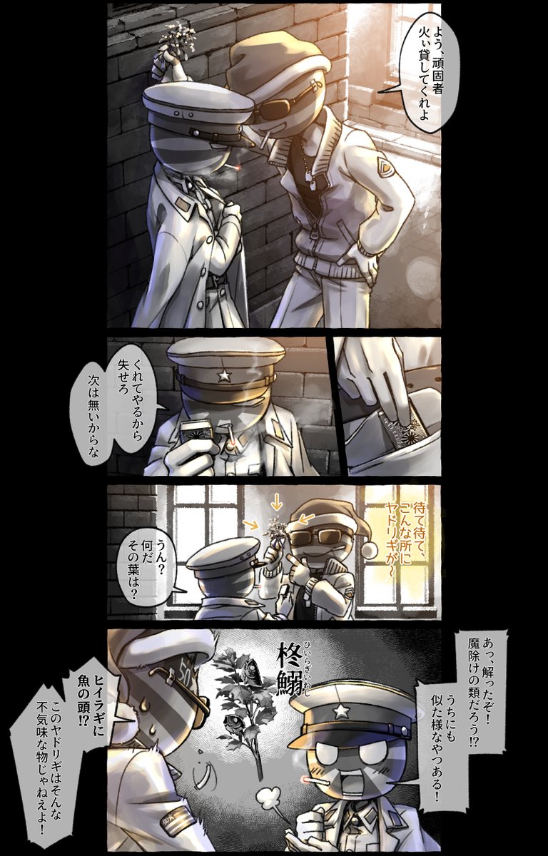 #CountryHumans #カントリーヒューマンズ クロ鰐さん(@friday_613)と絵茶で漫画を描きました。ナチ日とソ日BLネタです。 いやあ楽しかった!クロ鰐さん、お付き合い下さりありがとうございました。