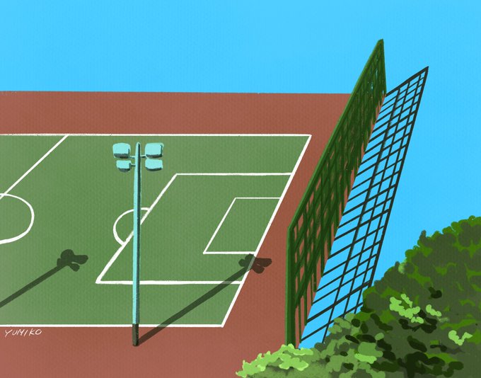 午後の九龍城塞公園運動場🏀🏐🏸Court at Kowloon walled city park. #hongkong #court #digitalpainting #illustration #香港 #イラスト #九龍城
