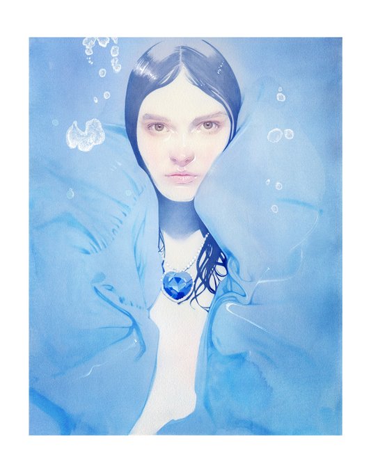 @VoguePortugal invited me to reimagine THE LITTLE MERMAID for the FAIRY TALE ISSUE. She wears Valentino Couture & the Heart of the Ocean necklace by @Asprey for Titanic the movie. #vogueportugal #valentinocouture #couture #asprey #finejewellery #littlemermaid #mermay #painting