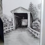 Covered Bridge Christmas Holidays winter matted print drawing black and white pen and ink etsy.me/3EKdOqK #holidayart #shopsmall #artist #penandink #coveredbridge #etsy #supportartists