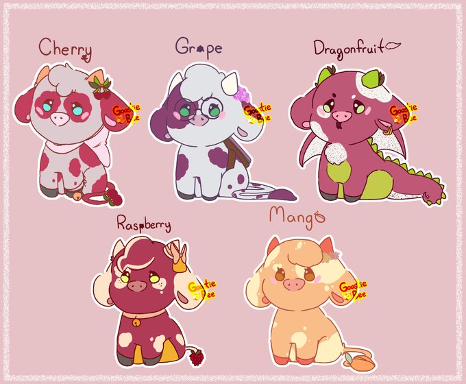 I've always wanted to make my own moomoo designs, so here's the first few I did! it was a lot of fun, I'll be making some more in the future c: #digitalart #originaldesigns #cows #fruitcows #moomoos