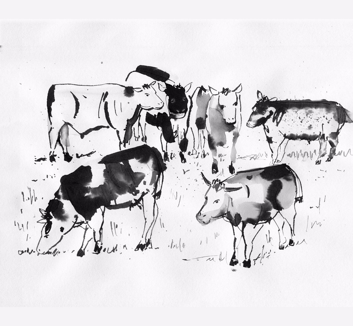 A few cows I’d seen in a field in Spixworth. #cows #dailydrawing #ink #painting #ArtistOnTwitter #thedailysketch