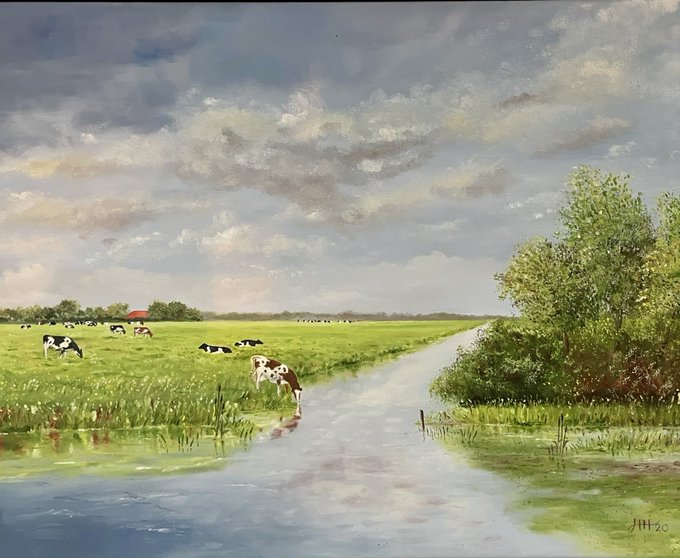 This is my painting “Cows in the meadow” #landscape #countryside #cows #meadow #oilpainting #art #artistsontwitter
