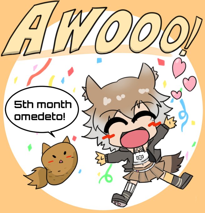 This is an illustration posted on this BBS. name of contributor【sunadorineko】 AWOOOOOOO! Coyopotatoes are also happy❤ これからも応援(おうえん)しています! #coyofanart5mos