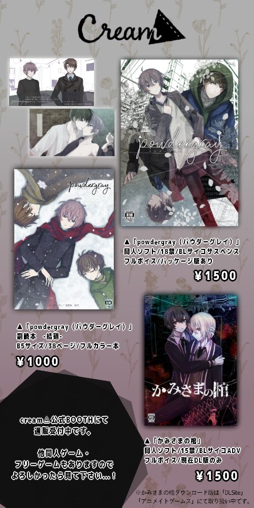■お知らせ オンラインイベントに参加します~! イベント合わせで無配ペーパー出しますので、よかったら来て下さい⛄✨ 「crAsM.M ビジュアルノベルオンリー」 開催日:11/14(日) 6:00-22:00 配置:え3 ※21時半頃から着席予定 ▼会場 pictsquare.net/2vcyzj5nzzncgk… #crAsMMビジュアルノベルオンリー