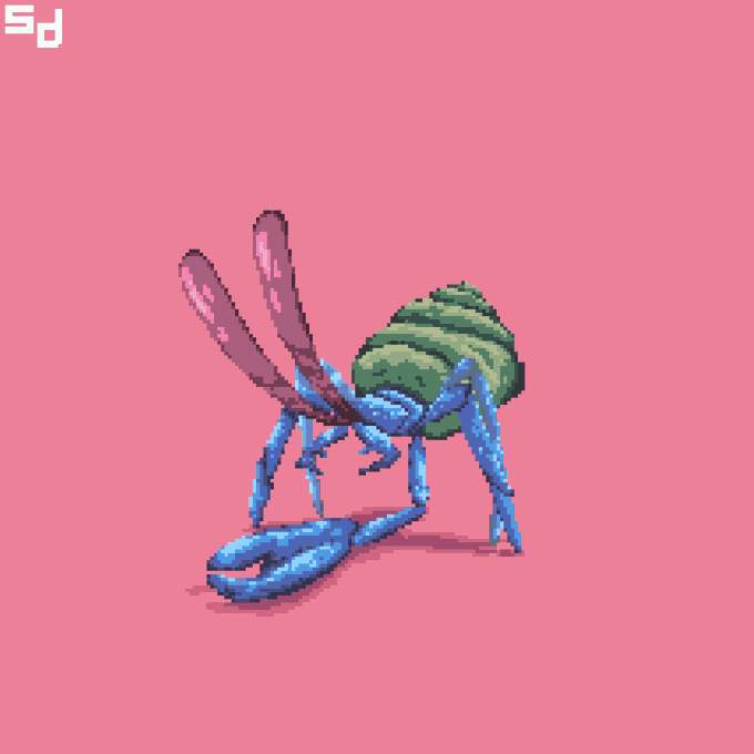 Camping out at the tide pool #ArtistOnTwitter #digitalart #digitalpainting #hermitcrab #crab #crustacean #starfish