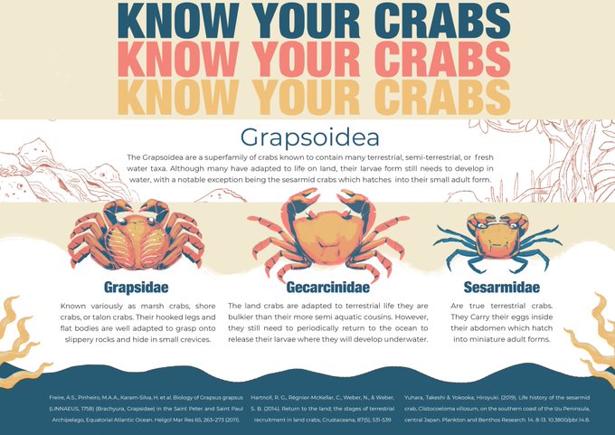 Babe wake up, it's time for crab. starting off with some land bois #KnowYourCrabs #art #illustration #graphicdesign #scicomm #infographic #animalart #crabs #brachyura #ocean #grapsidae #gecarcinidae #sesarmidae