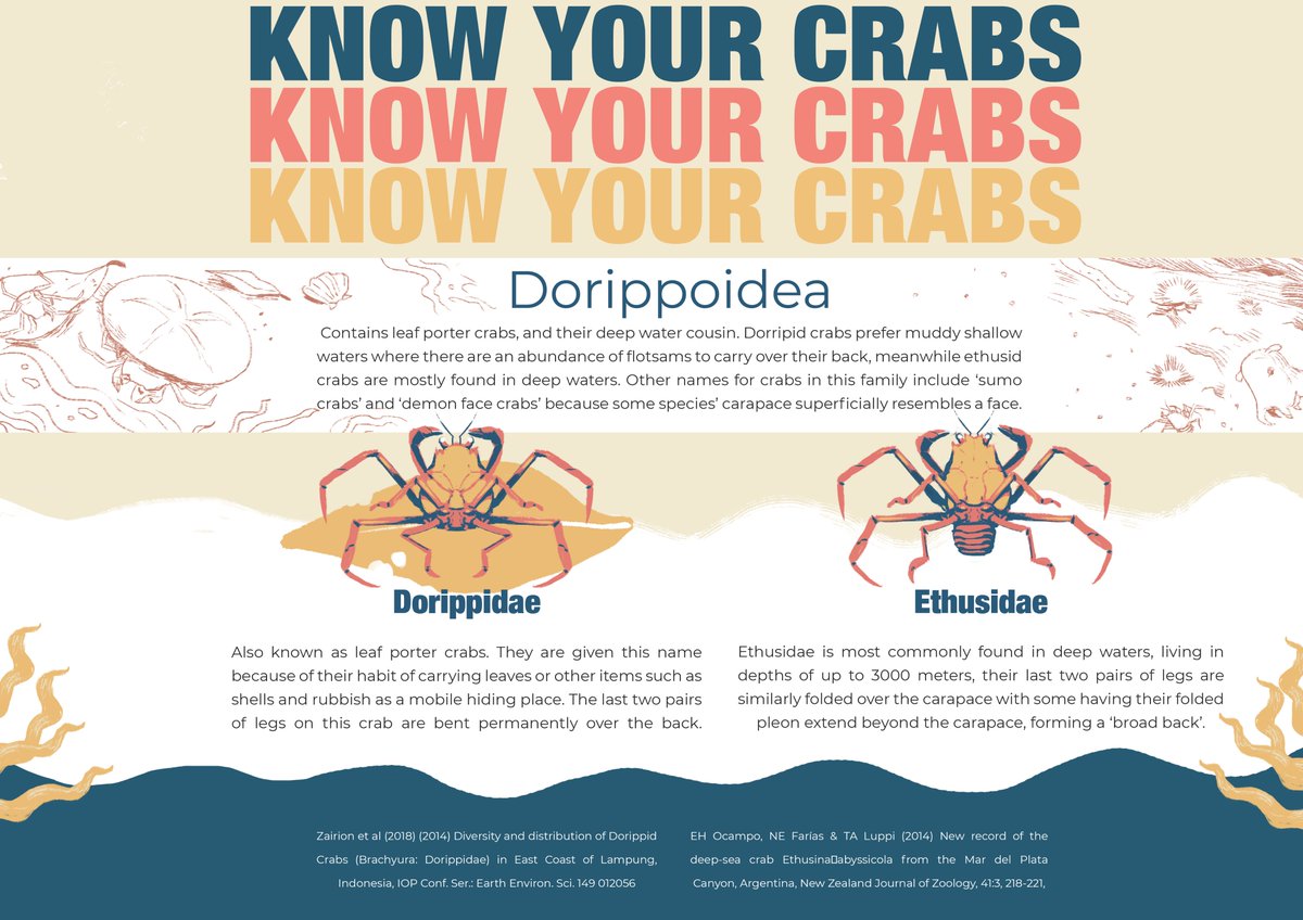 Leaf porter crabs have butt-legs. that is all #KnowYourCrabs #art #illustration #graphicdesign #scicomm #infographic #animalart #crabs #brachyura #ocean #Dorippidae #Ethusidae #leafportercrab #sumocrab