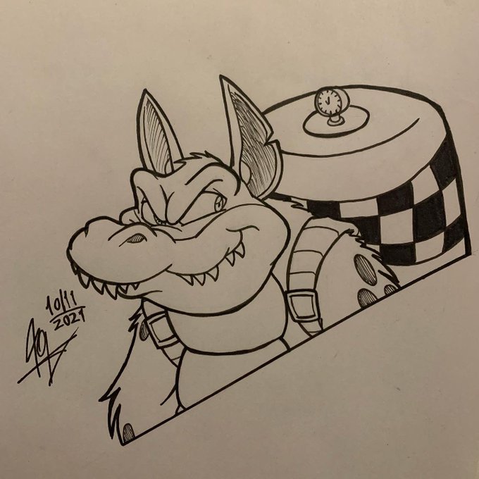 Day 11: “Dingodile” #Crashtober #Crashtober2021 #Inktober #Inktober2021 #TraditionalArt #CrashBandicoot