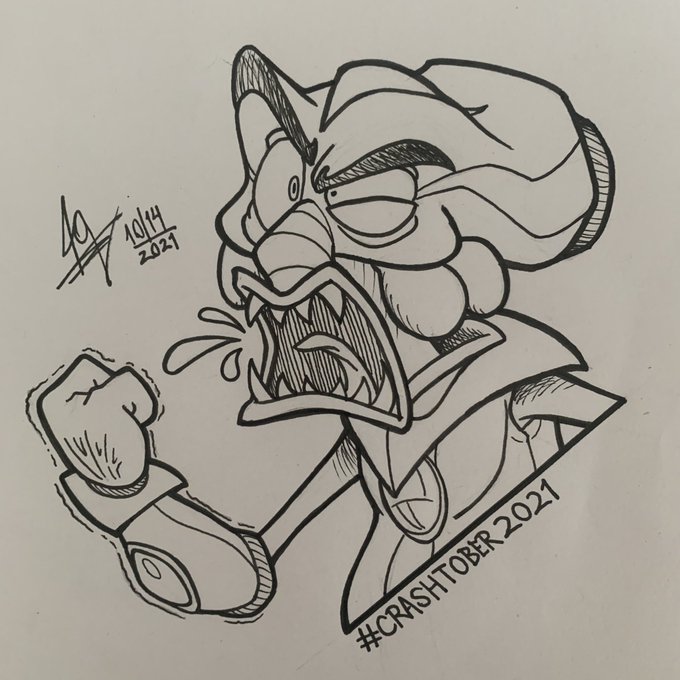 Day 19: “Dr Nefarious Tropy” #Crashtober #Crashtober2021 #Inktober #Inktober2021 #TraditionalArt #CrashBandicoot