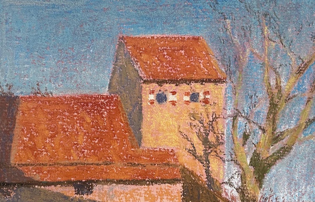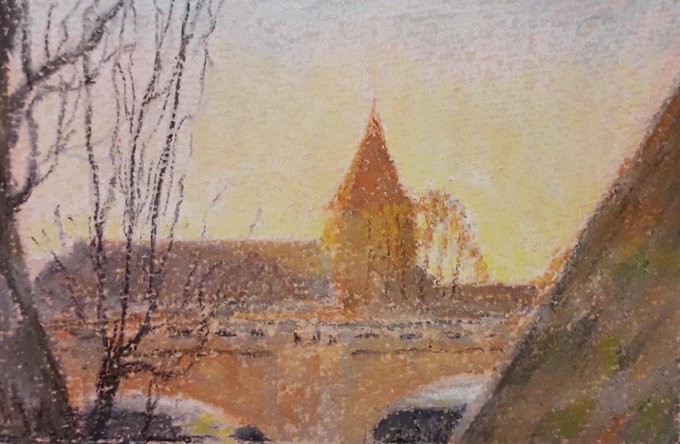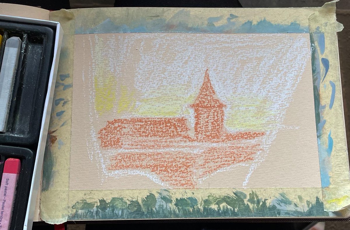 New one from today using crayons again at the castle here 🖍 #castle #medieval #sketchbook #crayons #pastelart #artistsontwitter #sketch #pleinair #artshare