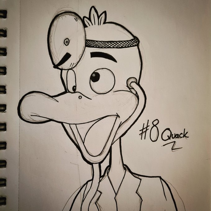 Inktober Day 8: Quack . . I changed prompts because I drew a match for Day 5: Flame. . . #inktober2022 #Inktober #inktober2022day8 #Inktoberday8 #artistsontwitter #art #artist #cartoon #QUACK #crazy #illustration