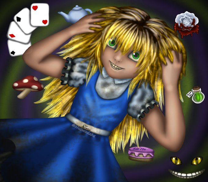 Commissions are open. fiverr.com/nuswodahs © Nuswodahs/Tora #nuswodahs #digitalart #digitalartist #art #artist #commissionsopen #halloween #drawtober #inktober #aliceinwonderland #crazy #insane #girl #rose #cards #drinks #food #mushroom #ArtistOnTwitter