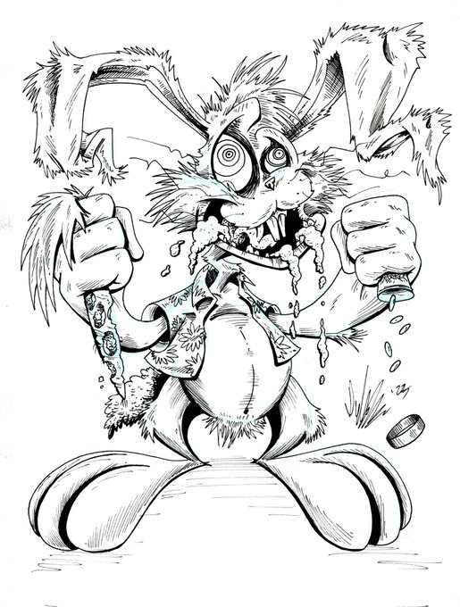 Here’s the manic drugged out rabbit from last night’s stream! Follow me on twitch at twitch.tv/outhousecartoo… #rabbit #yearoftherabbit #crazy #punk #punkrock #punkart #characterart #characterdesign #art #artist #cartoon #cartoonist #stream #twitch