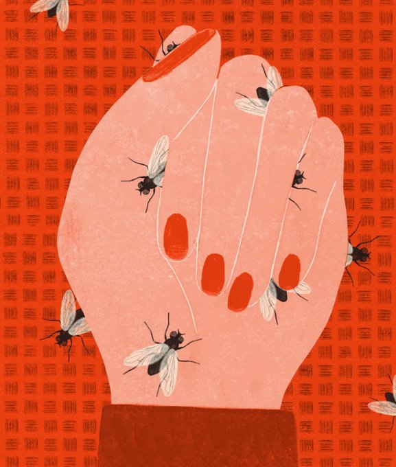 Illustration by #AnnaResmini for a weekly column of "Corriere della Sera." Explore Anna's portfolio: buff.ly/3szWkIz #hands #flies #red #rednails #editorial #illustration #acrylic #illustrator #conceptual #conceptualillustration #art #artist #artwork #creative #arte