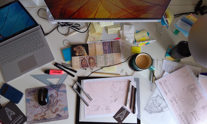 Current desk situation! #illustratorslife #dotdotdot #drawingoftheday #Archaeology #creatives #chaosartparty