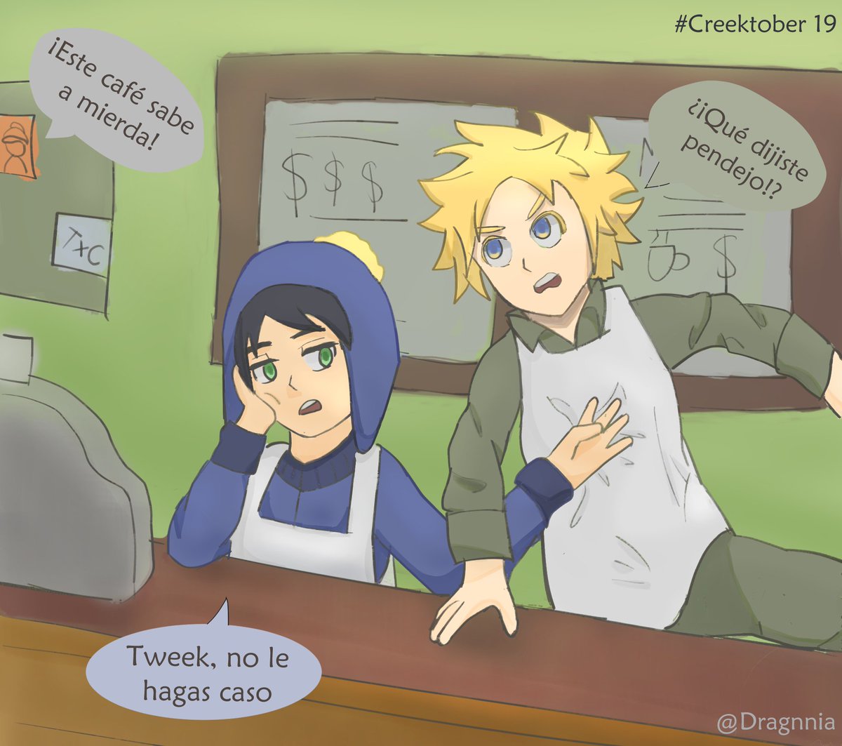 #creektober2021 #19 Tweek y Craig trabajando en la cafeteria -This coffee tastes like shit -What did you say assh*le? -Calm down, Tweek #southparkfanart #southparkcreek #spcreek #tweektweak #SouthPark #CraigTucker #spcraig #spTweek #inktober2021 #inktober