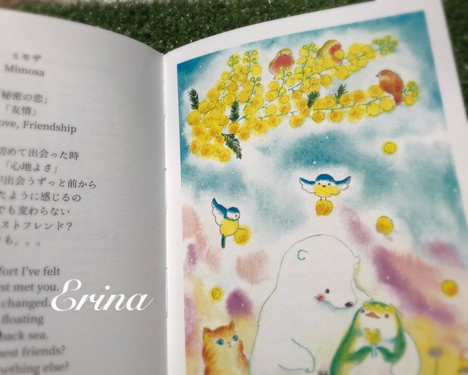 花言葉とものがたりの本の1ページ 読む人に一つでもお気に入りの花言葉が見つかると嬉しいです😊 creema.jp/c/erinascones2… #creema #creema限定 #花言葉 #creemasprings #クラウドファンディング #絵描き