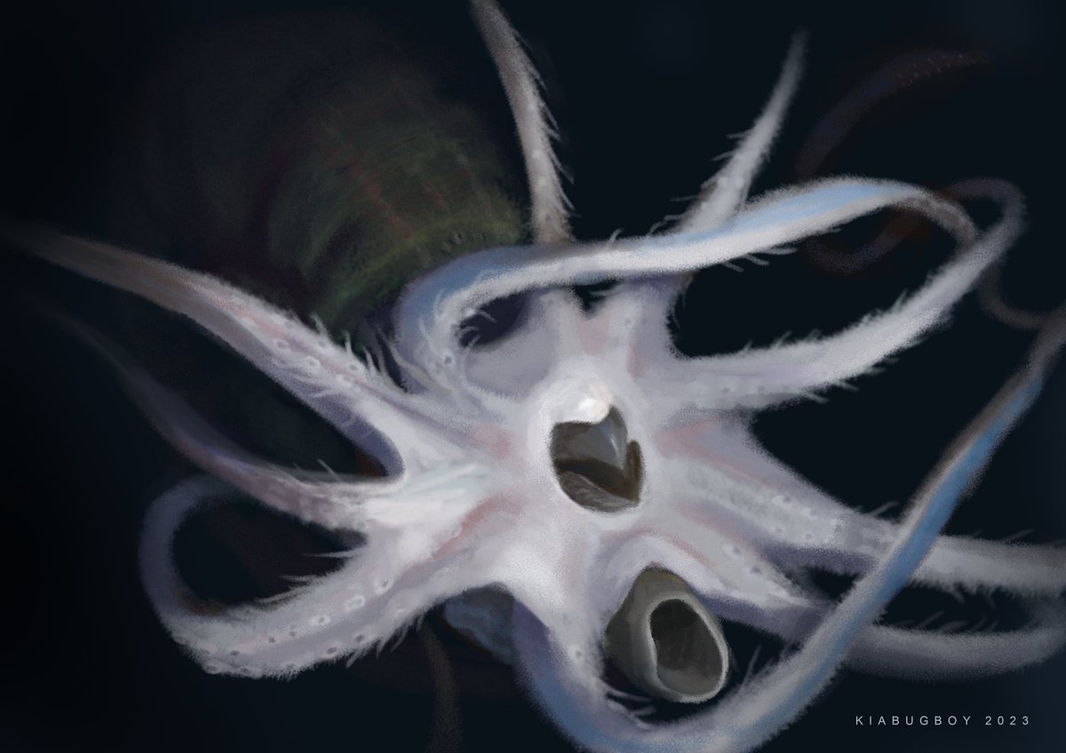 POV: you went scuba diving in the Cretaceous and bumped into a now-angry 2.5 meter Parapusozia #paleoart #illustration #penart #penartwork #animalart #ammonite #paleontology #invertebrate #cephalopod #parapusozia #cretaceous