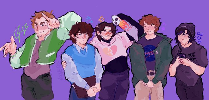 some dudes from that au designs by the great @suwamoos 😁 #crewschoolAU #dreamfanart #georgenotfoundfanart #sapnapfanart #karljacobsfanart #quackityfanart