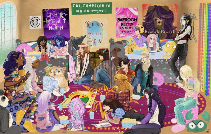 Alright, #critters I inspired the 90s to today-here are my pieces for the amazing project @Alternate_Role The awesome Slumber Party with all the ladies from #VoxMachina #themightynein #bellshells & other CR one-shots, familiar plushies, nostalgia posters,etc #criticalrolefanart