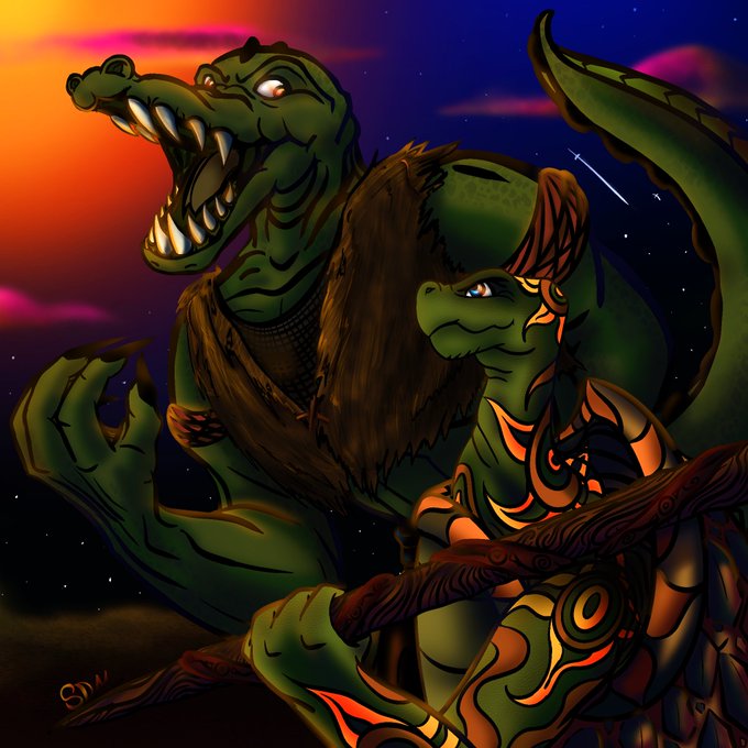 I made this for my bf! This is Usk and Oogway! They are my bfs and his friend's player characters in #Dnd Usk is a crocodile and Oogway is a tortoise! #croc #crocodile #tortoise #dndart #DnDcharacter #art #digitalart #digital #procreate #cool #dungeonsanddragons #magical #wild