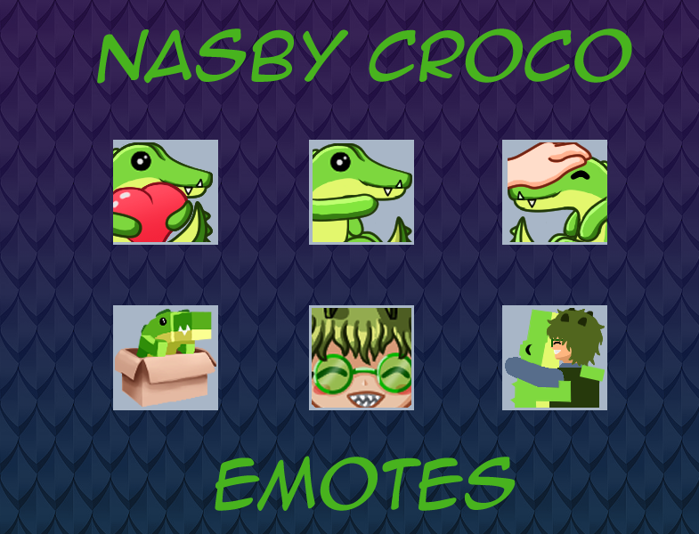 Worked on some of my Croco Emotes for my channel twitch.tv/nasbycroco! Here are some cute little crocos that I worked on today. Some are/will be animated. #emotes #oc #smallartist #digitalart #twitch #envtuber #vtuber #crocotubing