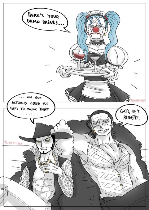 Ahhh women cross guild got me in a choke hold . #crossguild #buggytheclown #buggy #mihawk #ONEPIECE #Onepiecefanart #SirCrocodile