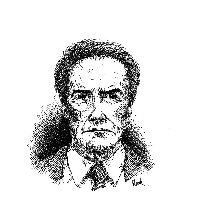 Clint Eastwood @ClintEastwo_ ~~~~ #art #illustration #ink #crosshatcher #ArtistOnTwitter #rtArtBoost #traditionalart #portrait #ClintEastwood #firstdrawingof2022