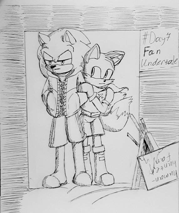 #inktober #inktober2021 #inktober2021day7 #SonicTheHedgehog #ShadowTheHedgehog #undertale #MilesTailsPrower #crossinktober "Human-hunter fan? So-o funny..."