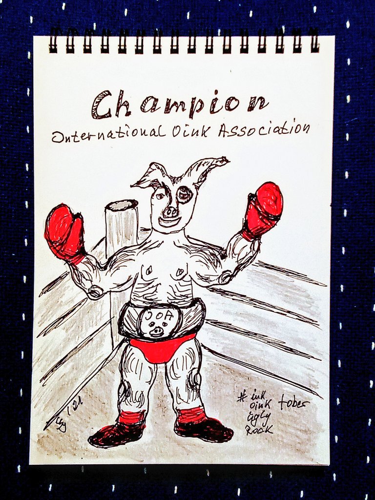 Moin Ihr Lieben 🌈❣️ @MircoForst @joschasauer #Rocktober #RockToberArt #inktober #oinktober #uglytober #crosstober #kleineKunstklasse Wir haben einen neuen alten Champion!🐷🥊 Das kommt beim Fernsehen raus Handwerker, Ringmode, Freizeitvergnügen.....was soll ich sagen 🥊😂 !B