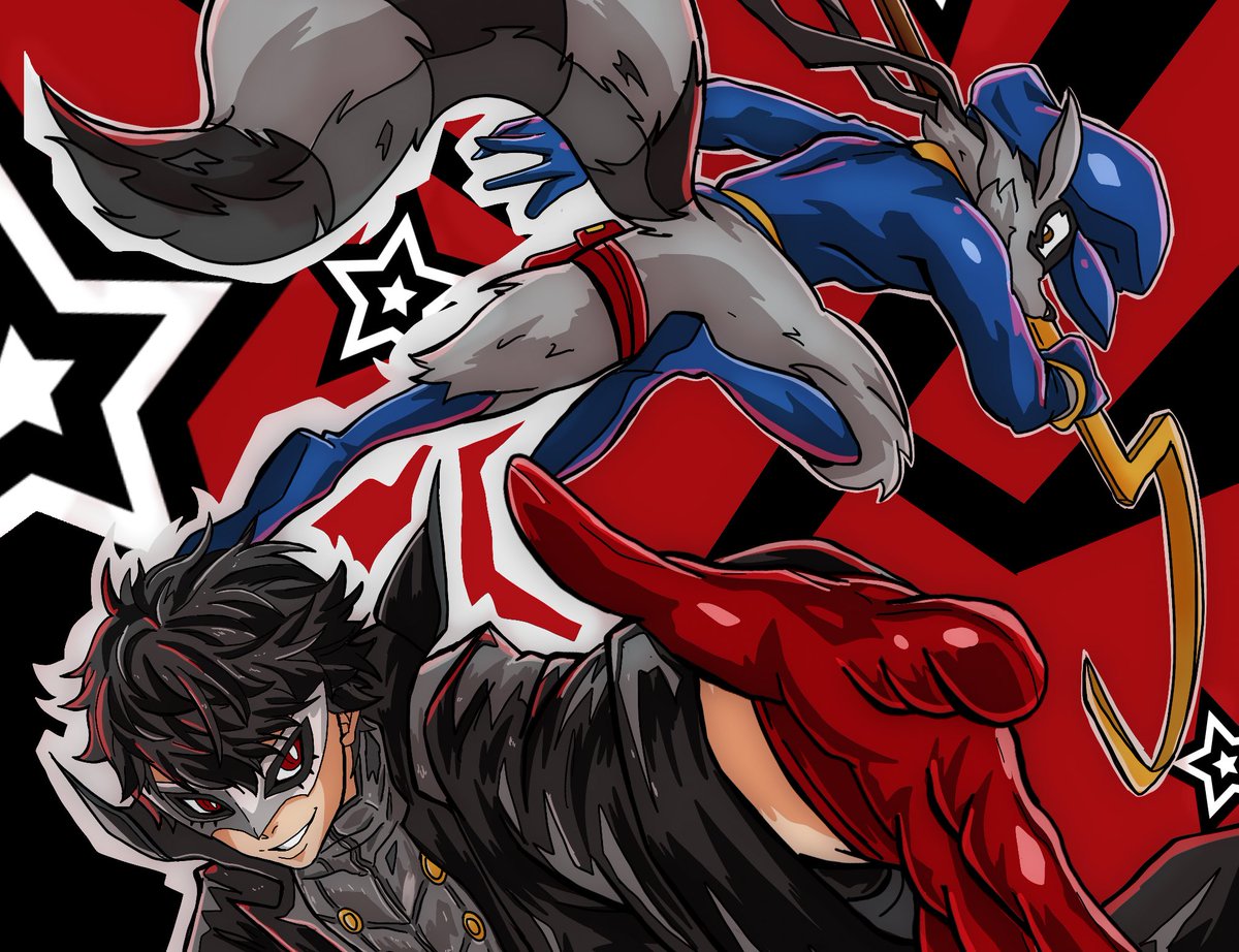 Day 9 of #crosstober goes to #joker from #persona5 and #slycooper I truly feel Sly would try to mentor Joker haha! #inktober #inktober2021 #ArtistOnTwitter #ShinMegamiTensei #anime #fanart #manga #animeart #illustration #thieves
