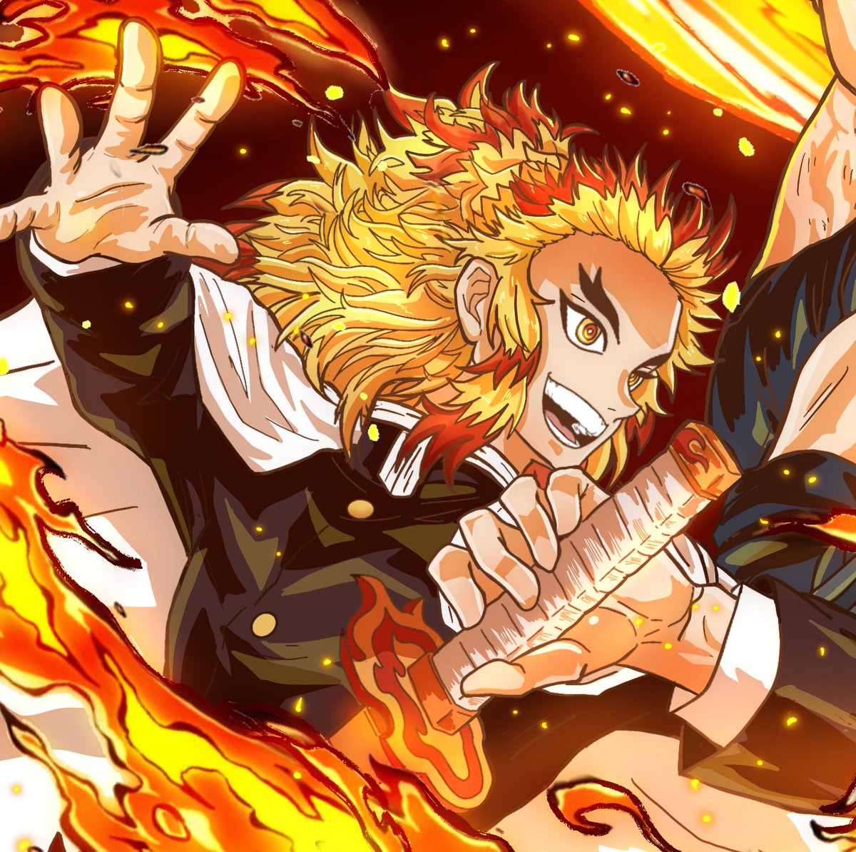 Day 10 of #crosstober goes out to #rengoku from #DemonSlayer #DemonSlayerSeason2 and #portgasdace from #ONEPIECE the flame greats #art #inktober #inktober2021 #tanjiro #monkeydluffy #bhfyp #illustration #ArtistOnTwitter #fire #anime #manga #fanart