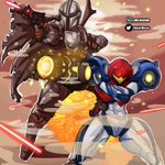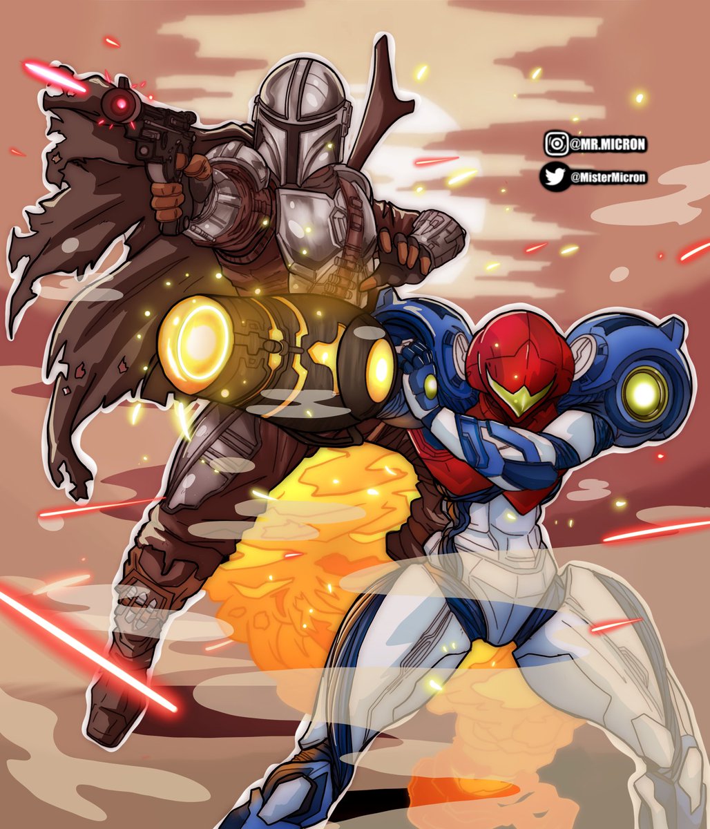 Day 13 of #crosstober goes to #Samus #samusaran from #MetroidDread and #DinDjarin #TheMandalorian from #starwars two of my fav bounty hunters! #inktober #inktober2021 #StarWarsFanArt #StarWarsVisions #anime #manga #artistsontwitter #mando #metroid #art #babyyoda #Grogu