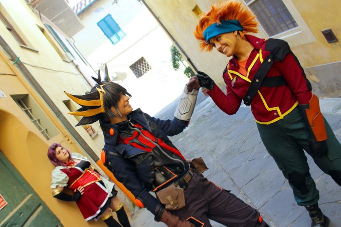"Let's pull off something big here in Satellite, together!" 📸: @Cyberse1701 🖌: @ votodream (instagram) 🤩 #yugioh #5ds #yugioh5ds #遊戯王 #遊戯王5ds #teamsatisfaction #cosplay #yugiohcosplay #5dscosplay #yugioh5dscosplay #yuseifudo #jackatlas #kiryukyosuke #crowhogan