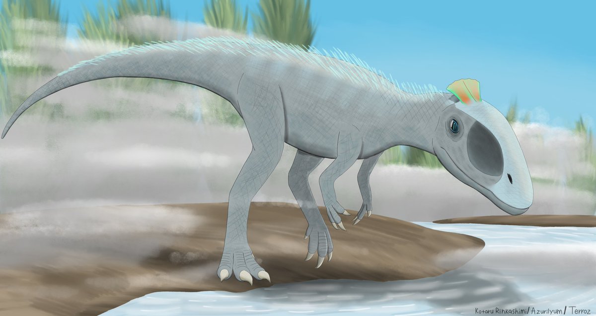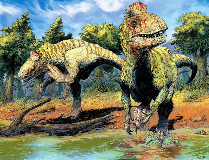 Welcome to #Cryolophosaurus week! The "Frozen Crested Lizard" was one of the largest predators at the time & is currently one of the only dinosaurs known from #Antarctica. This week's posts will be all about this crested carnivore. (#PaleoArt by @Cynderen)