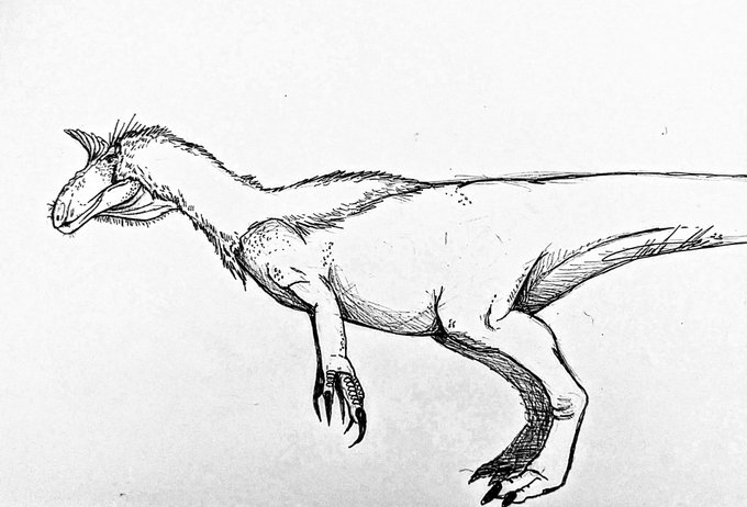 #Dracovenator is an Early Jurassic theropod found in the Elliot Formation. Some may consider it nearly identical to #Dilophosaurus, but its material and current phylogenetic placement says otherwise, being closer to #Cryolophosaurus. #paleoart #paleontology #dinosaur #paleo