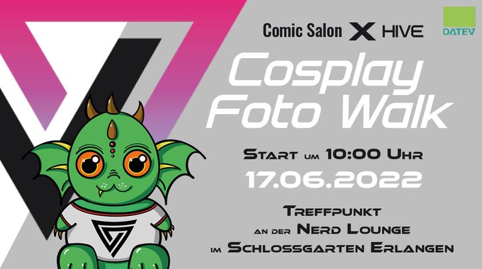 [#HIVEcsp] HIVE x Cosplay ? Project HIVE, @DATEV und @Comic_Salon_ER präsentieren euch den Cosplay Contest. 😎 STAY TUNED AND SAVE THE DATE #csedigital #comicsalon #cosplay