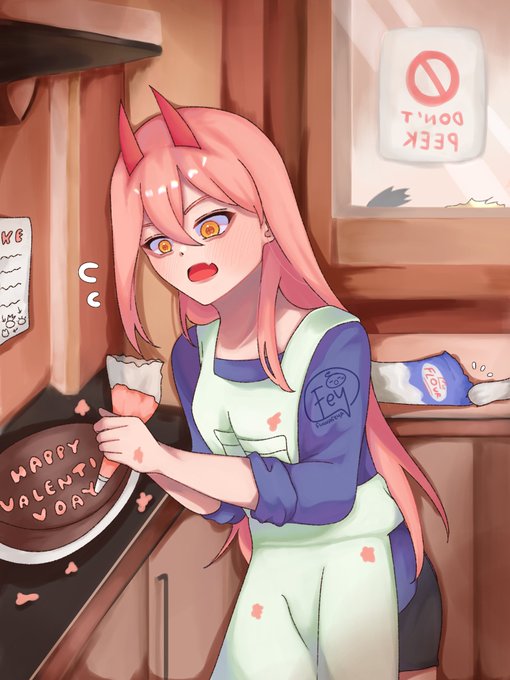 "I... I made a chocolate for you! Um.. I-I am not sure about the taste, but... I-it's not poisoned so don't worry! It won't kill you!" #csmvalentine