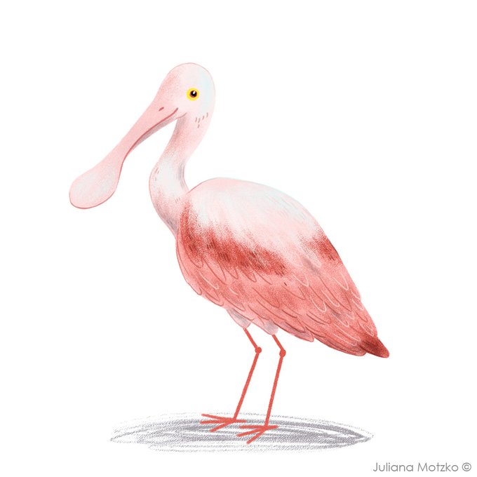 A Roseate Spoonbill. Design available in my stores. Link in Bio. #roseatespoonbill #spoonbill #avianaugust #cutebirds #birds #cute #animal #illustration #illustrator #artist #characterdesign #kidlitart #kidlitartist #cuteanimals #art #JulianaMotzko