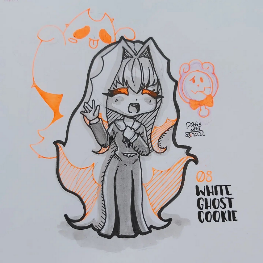 Cookie Run Inktober Day 8 with White Ghost Cookie 🥰 #artiktok #art #inktober2022 #cookierunkingdom #cookierunovenbreak #cookierun #inkdrawing #ink #inktober #chibi #chibiart #sketchbook #tiktokart #ghost #cute