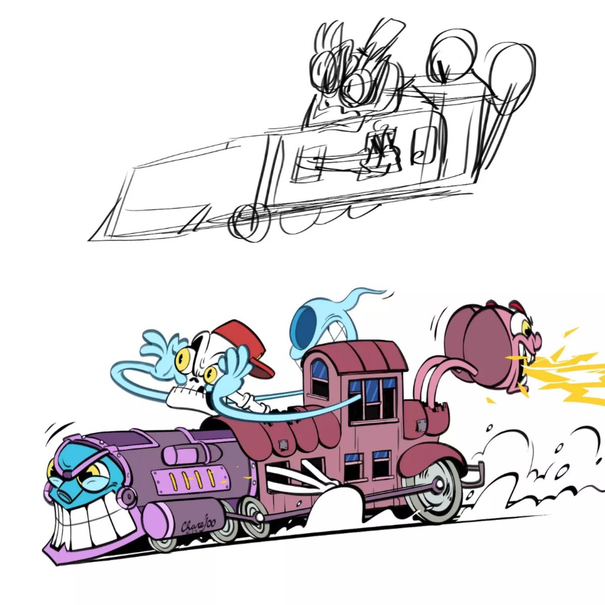 Phantom Express race car from basic idea to full concept! #CupHead #cupheadfanart #fanart #illustration