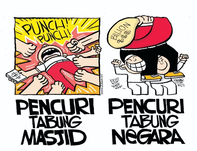 PENCURI TABUNG MASJID vs PENCURI TABUNG NEGARA! Please share. More @ zunar.my #1MDB #CURIBILION #tabungmasjid