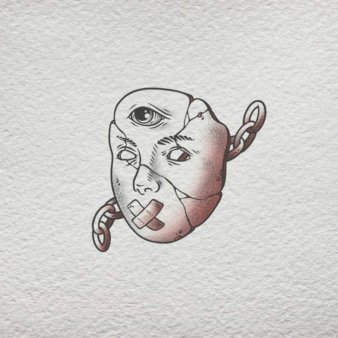 Another #inktober2021 drawing this prompt being Mask! Went for a different set of colors this time but same concept. #cursedrelics2021