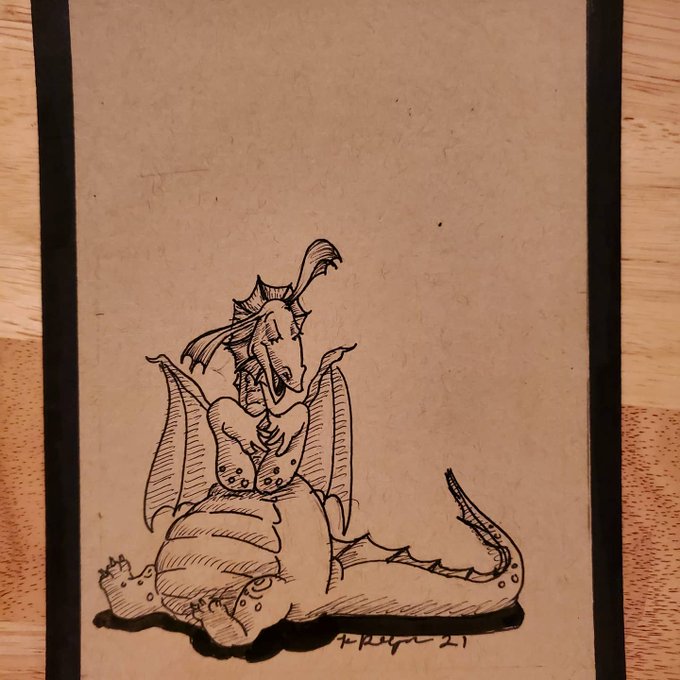 And I'm back sorry I missed thr weekend ( it's been a rough month) but the first of the 3 set dragons is Niv- mizzet Pranu as the reluctant dragon #reluctantdragon #altartcards #inktober2021 #customcards #magictober