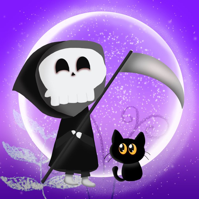 Introducing Death and Kiki, his loyal cat companion! Poor Death. So misunderstood to the point Kiki is his only friend. . . . #death #reaper #kawaii #cute #illustration #digitalart #cutedeath #deathandkiki #cutecat #neko #cat #kitty #kawaiicat